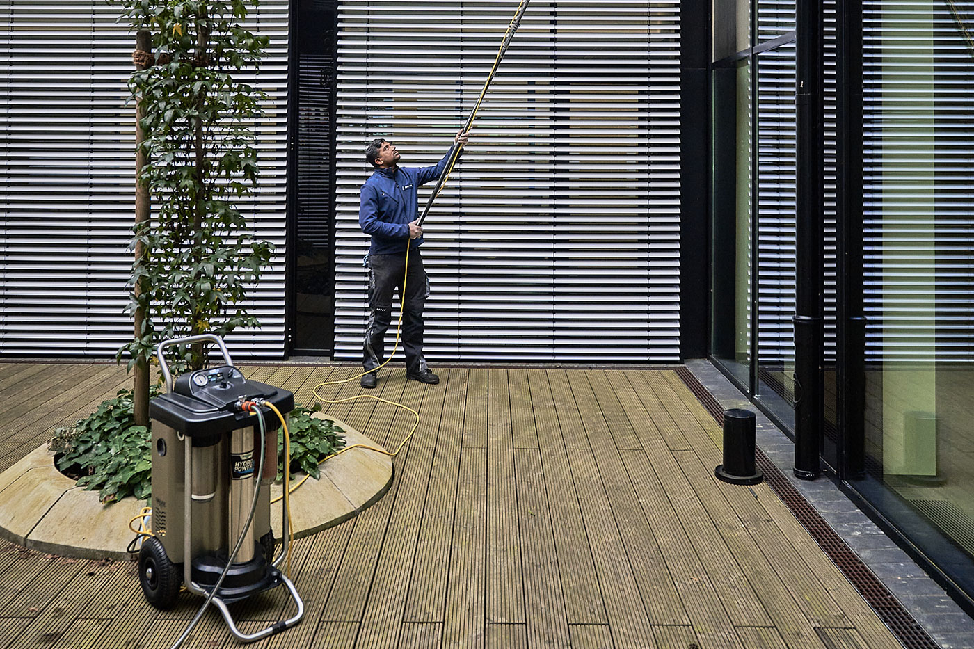 Unsere geschulten Fachkräfte beherrschen den Einsatz dieser Systeme und gewährleisten streifenfreie Ergebnisse, selbst bei starken Verschmutzungen.